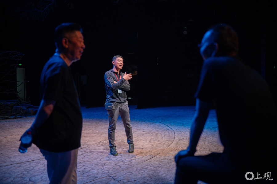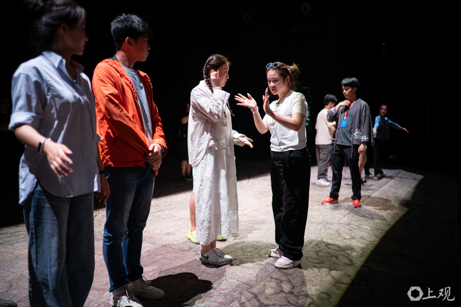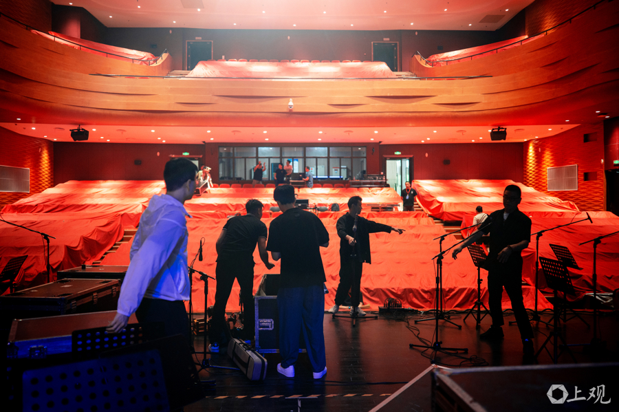 下午4点,舞台各技术部门全部就位,演员们开始了演前的走台试音。