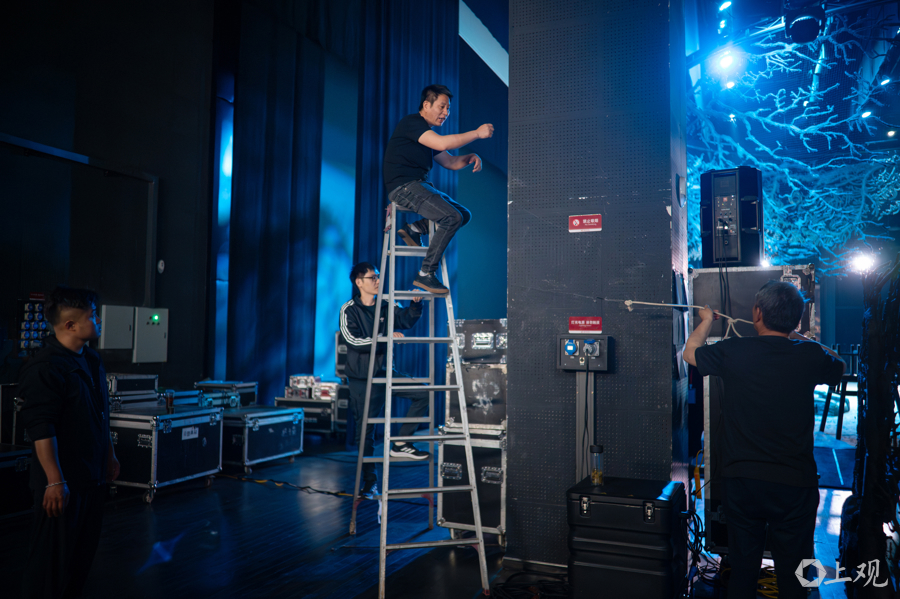 23日下午开始,沪剧院舞美组率先进场,开始紧张的装台工作。