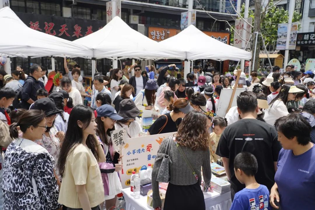 青少年爱心义卖集市同样吸引了众多市民驻足。来自宜川附校、长征中心小学、华东师范大学附属小学等13所中小学和亲子家庭积极参与,“摊主”平均年龄不超过15岁。红领巾们早早来到现场布置摊位、整理商品,热情向大家介绍义卖商品。“参加青少年爱心义卖活动是一次非常有意义的经历,不仅体会到奉献的快乐,也让我收获了成长与感动。”来自江宁学校的一名小队员说道。本次所有活动义卖收入将统一捐赠至长寿社区基金会,用于辖区困境儿童微心愿项目。