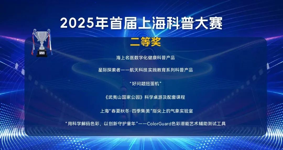 经过激烈的角逐和严格的评审,宝山区气象馆表现亮眼,其联合新民晚报、浦东区气象局共同开发的《上海·四季集美“指尖上的气象实验室”》项目,荣获此次大赛科普作品“二等奖”。