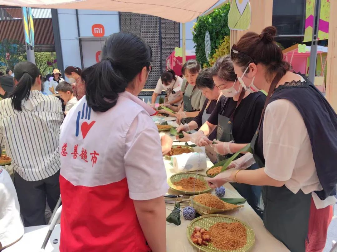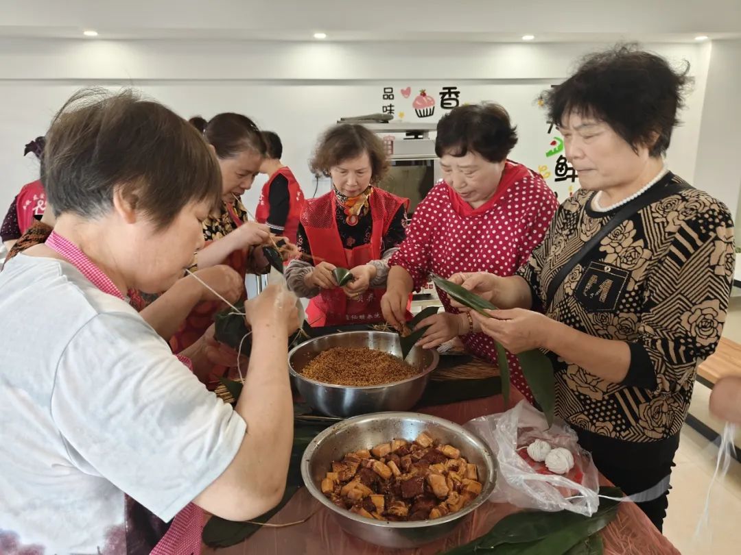 此外,南桥镇慈善超市还精心策划了一场温馨的端午节主题活动。活动现场,糯米、粽叶、红枣等食材摆放整齐,社区工作者、志愿者与老人们围坐在一起,捋粽叶、填糯米、封口扎捆,不一会儿,形态各异的粽子便摆满了桌面。大家一边包着粽子,一边唠着家常,欢声笑语此起彼伏。当热气腾腾的粽子出锅,大家围坐共享这份美味,浓浓的节日氛围不仅丰富了老年人的日常生活,更以实际行动将社会的关爱与温暖传递到每位老人心间,让传统节日绽放出别样的温情光彩。