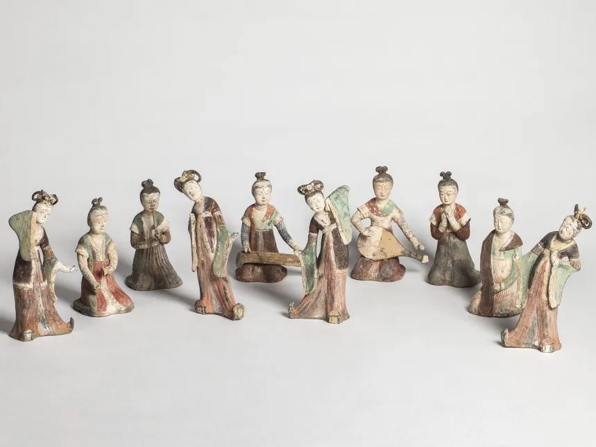 灰陶彩绘乐舞俑唐郑州大象陶瓷博物馆藏