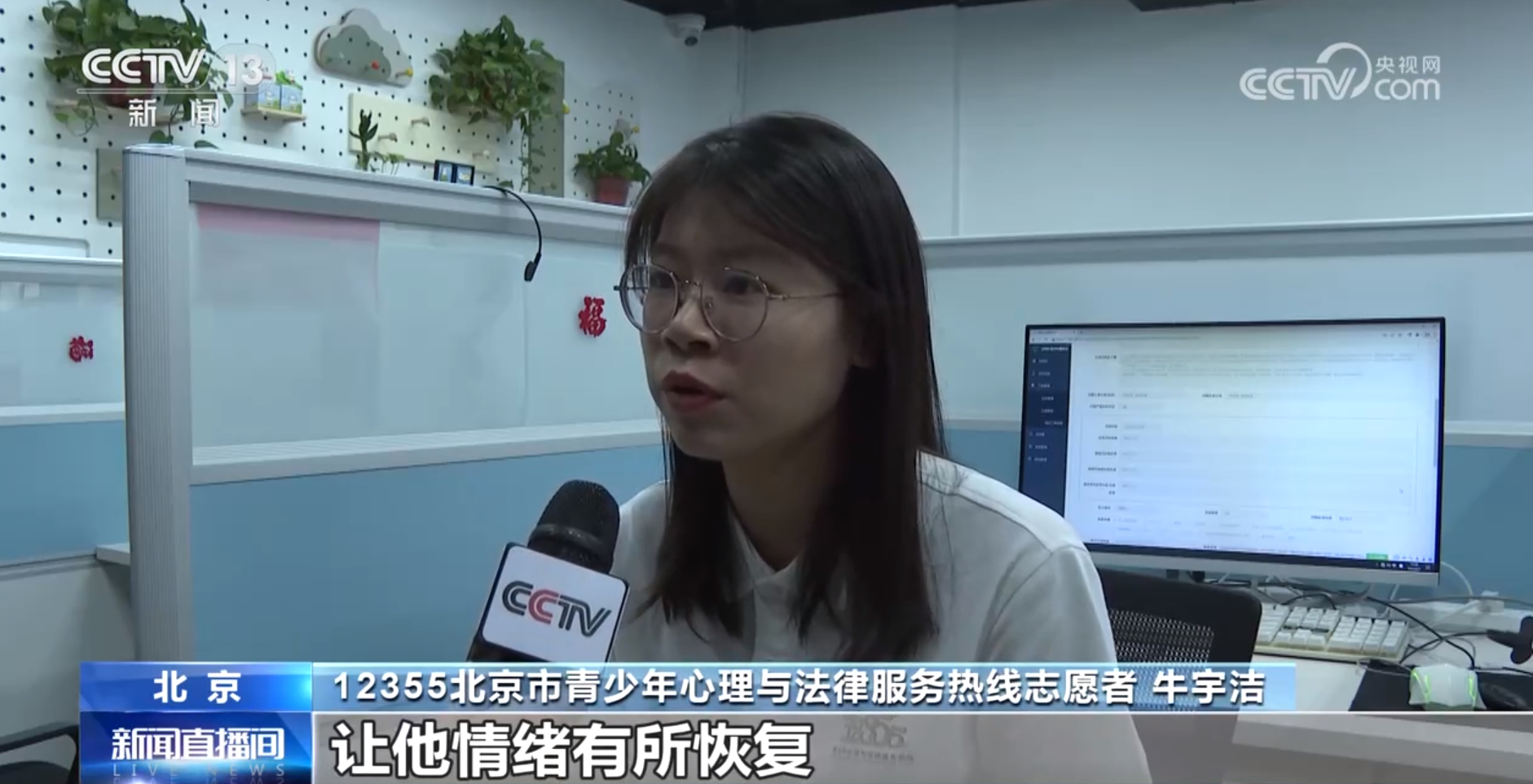 12355北京市青少年心理与法律服务热线志愿者 牛宇洁:通过30分钟的一个对话,让他情绪有所恢复,尤其到最后的时候来电者会觉得谢谢你,非常真挚地感谢,我觉得那份真诚让我觉得非常有价值。