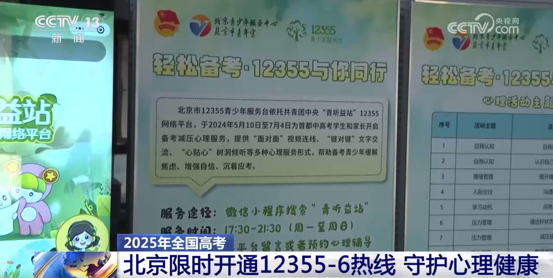 据了解,今年北京市12355-6考试季热线将持续至7月2日。