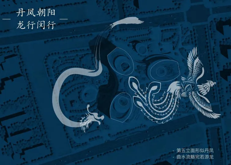 将水系和绿化抽象出来就有了“丹凤朝阳”的形象。你看出来了么?