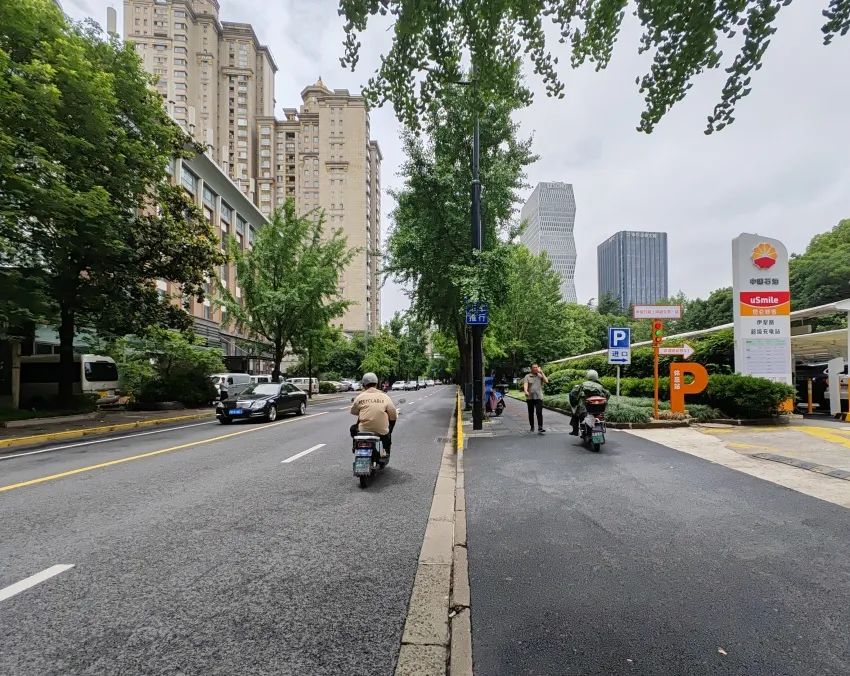 伊犁路作为连接延安西路与虹桥路的重要通道,全长680米。该路中段与安顺路相交,形成了一个“丁”字路口,却因规划问题导致当下“南北失衡”的局面:安顺路至延安西路段(约380米)设置了双向非机动车道,能满足非机动车双向通行需求;而安顺路至虹桥路段(约300米)仅东侧单向设非机动车道,西侧未设置,导致整个区域的慢行网络出现断点。