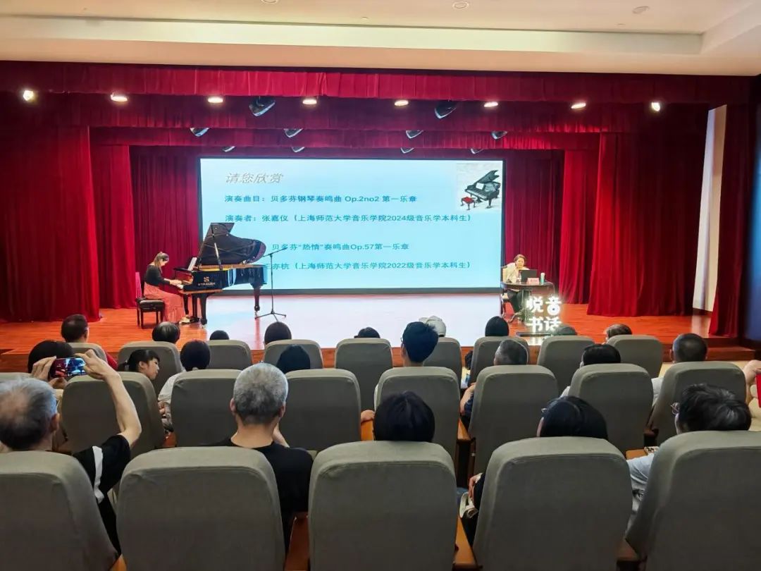 除了图文解读,现场还有三位来自上海师范大学音乐学院的优秀学生担纲表演嘉宾,演奏了贝多芬《“热情”奏鸣曲》、肖邦《华丽圆舞曲》、李斯特《梅菲斯特圆舞曲》等经典钢琴曲目,将“豪放派”与“婉约派”这两种不同的美学极致具象化,让读者们被黑白键所蕴含的无限表现力所折服。