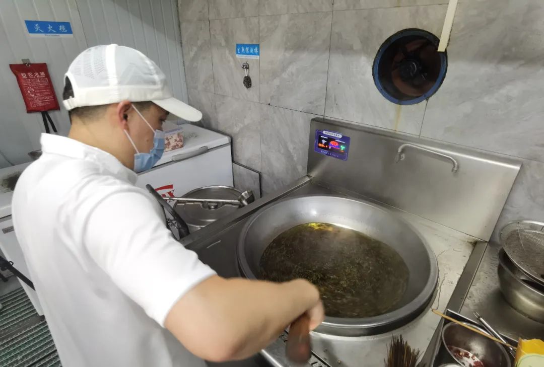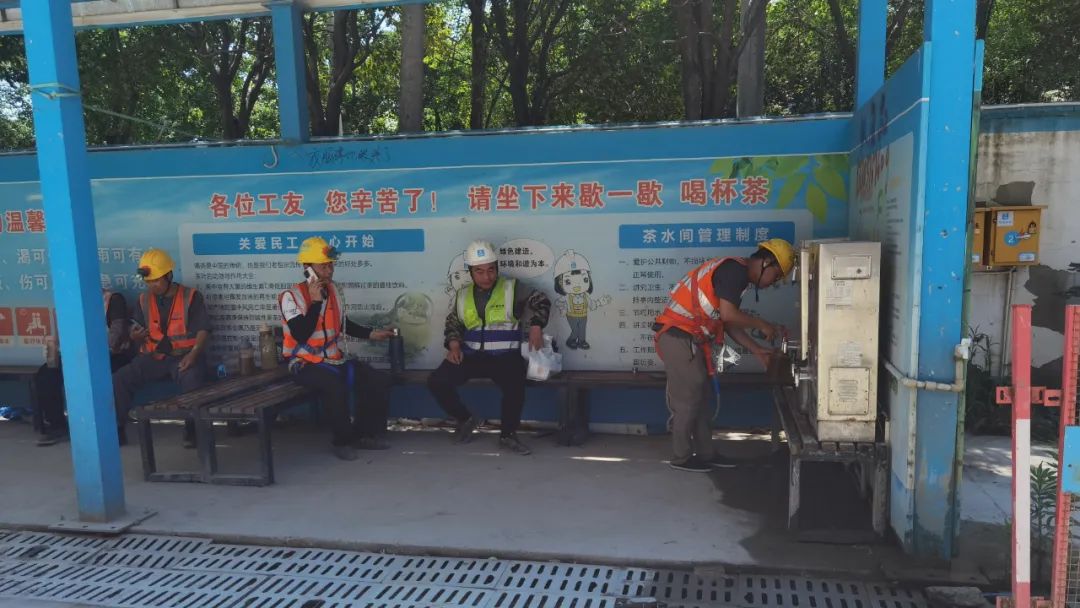 宋睿介绍,工地还配备了喷雾、风扇等降温设备。10名安全员也会不定时在工地巡逻,及时处理突发情况。在饮食方面,近期餐食以清蒸、素食为主,口味偏清淡。“绿豆汤我们都提前熬好,放到空调房里冷却,等工人下班之后就可以吃了。”工地食堂负责人廖才煌介绍。