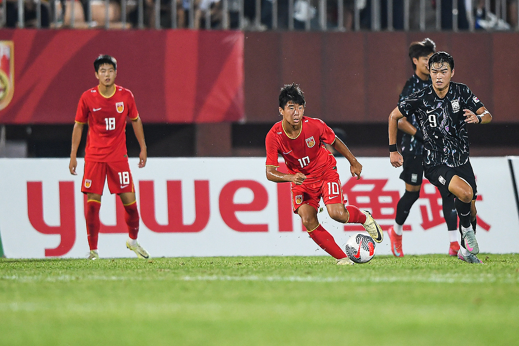 上半场结束前,中国队遭遇黑色两分钟,金志浩梅开二度反超比分,南伊安转身抽射再下一城。半场战罢,国少队以1比3落后韩国队。