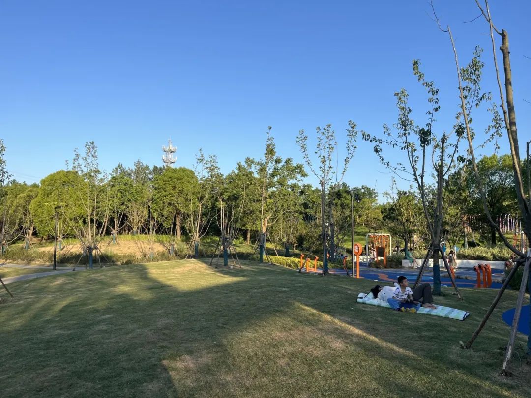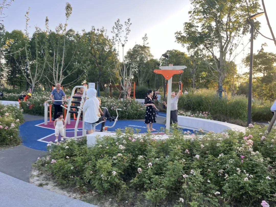 据介绍,大黄村公园位于上海市宝山区杨行镇、顾村镇,东至蕰川公路、南至泰和西路、西至富长路、北至水产西路,总面积近50公顷。公园以“春景秋色”为主题,种植了白玉兰、水杉等植物,夏季绿树成荫,能为游客遮挡阳光,提供凉爽的休憩环境。园内形成了以儿童游乐等功能为一体的全龄友好空间,还配备了多种健身设施,无论是白天还是夜晚,都能满足市民不同的游园需求。