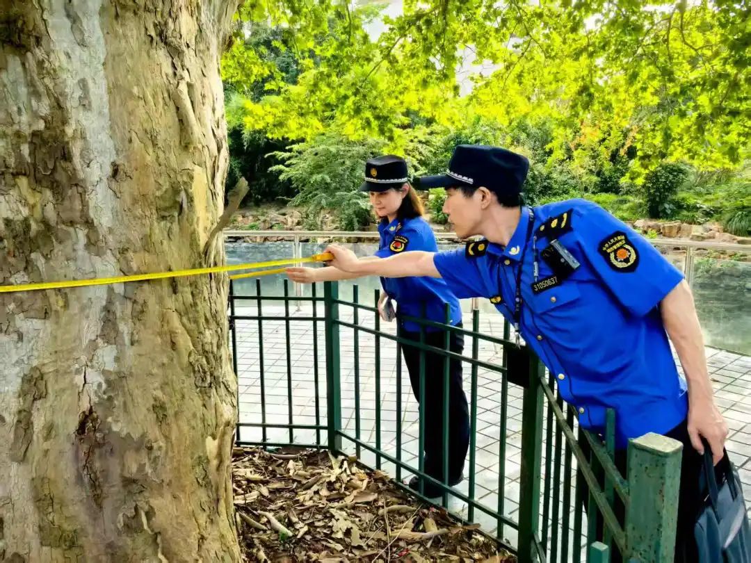 执法队充分发挥基层触角优势,将古树名木保护纳入网格化日常巡查重点。队员们如同古树健康的“哨兵”,定期细致走访每一处古树点位;对私搭乱建、堆放杂物、不当硬化铺装等可能威胁百年古树健康的隐患苗头保持高度警惕。一旦发现风险,队员们立即上前沟通劝导,清晰阐明古树名木的珍贵生态、历史价值及保护法规;对于需执法介入的情况,执法队第一时间规范上报并紧密跟踪,确保隐患及时消除在萌芽状态;主动配合绿化部门完善“一树一档”信息管理,为精准保护提供数据支撑。