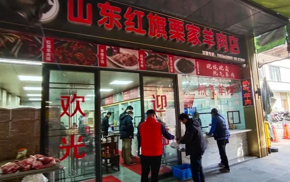 截至今年,这家店营业已满二十年。多年来,凭借其闻名的白切羊肉,收获了一批忠实的顾客。尤其是喜欢喝上两口的老爷叔,最是喜欢羊肉加小酒。先喝上几口小酒把湿寒散去,再补充进温性的羊肉,达到祛湿散寒滋补脏腑的功效。这里的羊肉,一口下去酥烂鲜嫩,润而不腻,也是顾客们经常来排队的缘由。