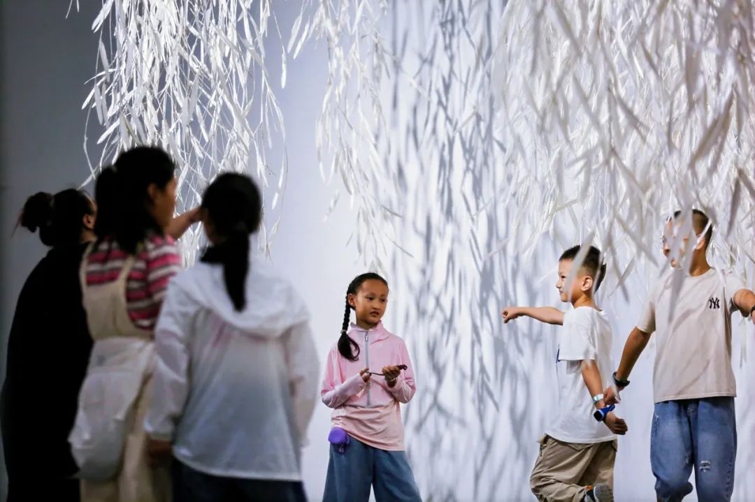 不断举办的艺术公共项目则把艺术带进田野与巷陌,美术馆由展示空间转化为跨文化对话与社会参与的平台,如“光阴的故事——二十四节气艺术展”中,央美艺术家与本地创作者合作“银川小满”主题作品,将对银川的印象跃然纸上。“奔流的舞姿:艺起织造母亲河”大型公共艺术活动吸引200余位观众参加,共同织造了一条艺术的“黄河”,让艺术成为日常。依据“一颗种子的旅行·元点”展览,特别策划的“美术馆奇妙夜”项目,则为小朋友开启一场探索之旅,在趣味互动里为孩子们播下艺术的种子。
