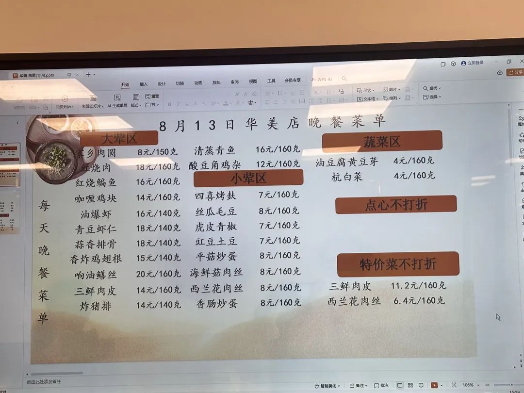 “标准化定量+个性化定制”成了食堂的新规矩:每客米饭270—300克,菜品130—150克,分量全公示在墙上;带辣的、动物内脏类菜品全下架,换成低盐少糖的炖菜;有老人行动不便,食堂还能提供食物分剪、“半份菜”服务。