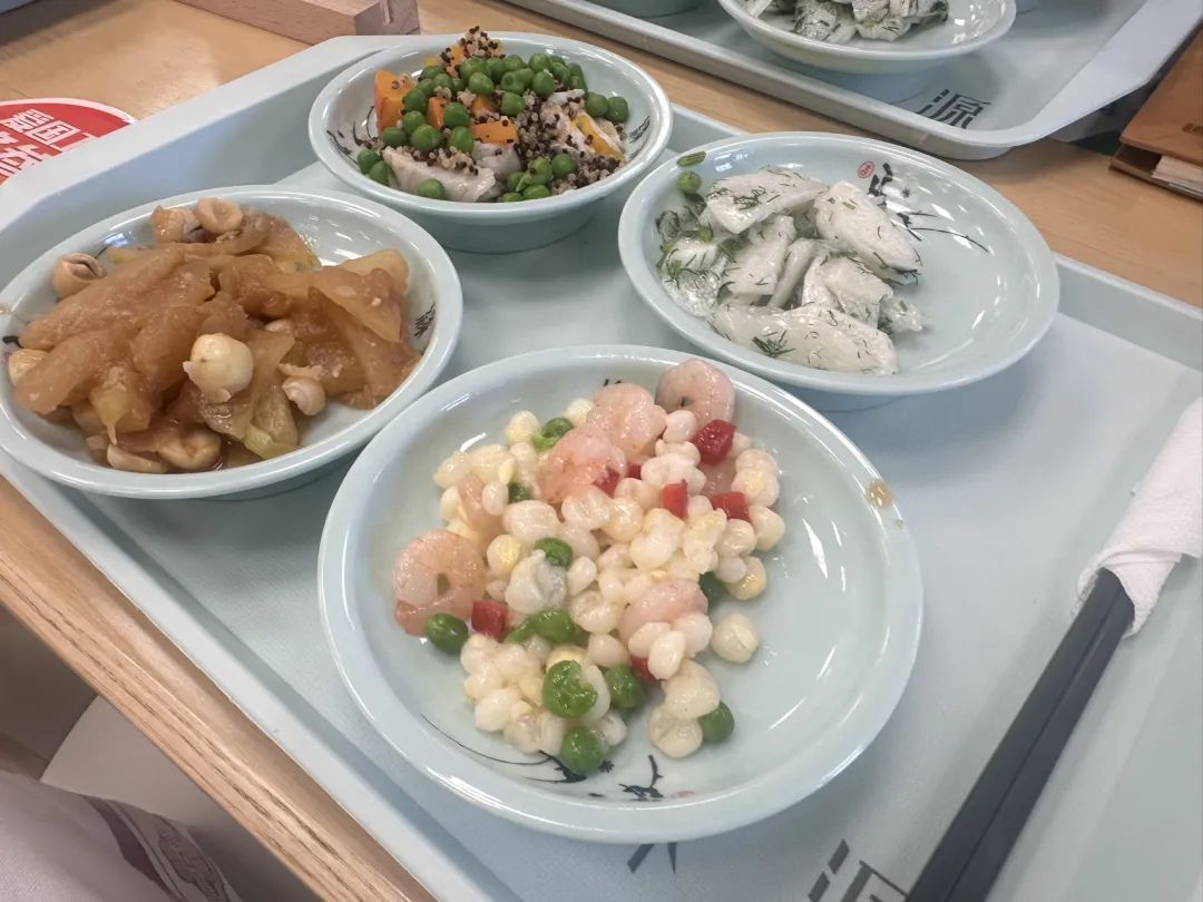 她口中的这道菜是食堂新推出的“健康低脂餐”系列之一:去刺的鲈鱼肉切得小块,配着青豆、三色藜麦,再搭一杯紫苏柠檬茶,热量才200多大卡。“以前觉得健康餐没味道,这个鱼鲜得很!”韩国丽的话,正说中了食堂的新心思——不仅要让老人吃得舒服,也得吸引年轻人。