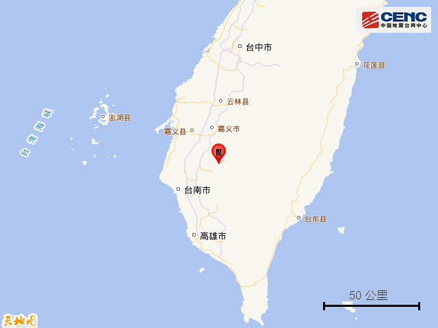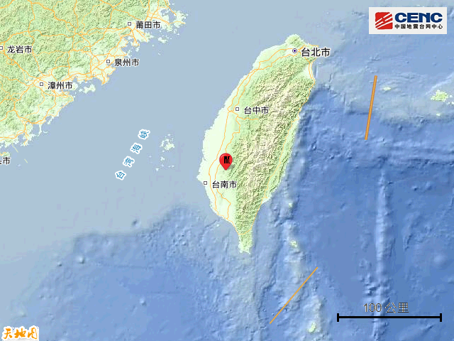 央视网消息:据中国地震台网微信公众号消息,据中国地震台网正式测定,8月22日14时6分在台湾台南市发生4.6级地震,震源深度22公里,震中位于北纬23.19度,东经120.51度。