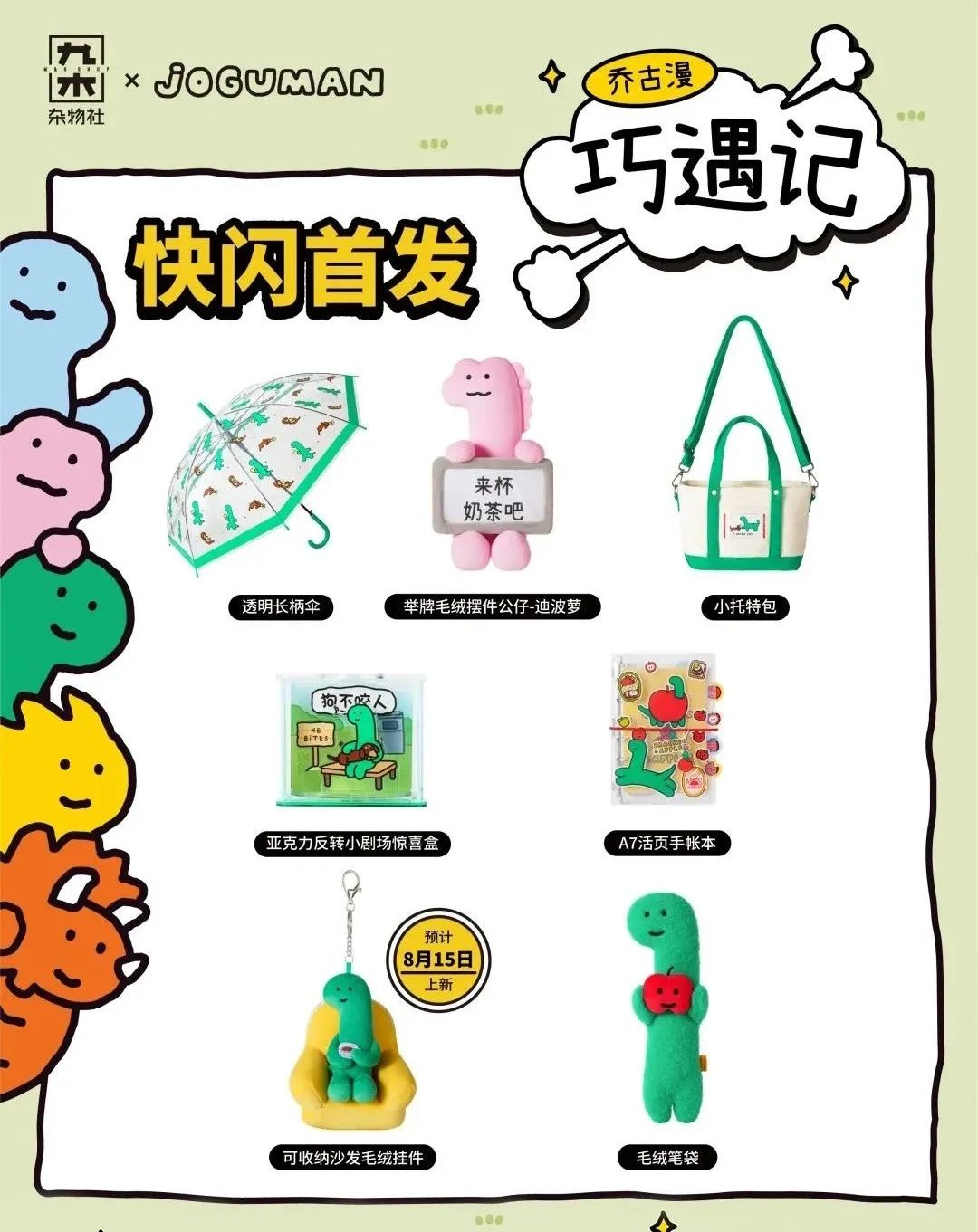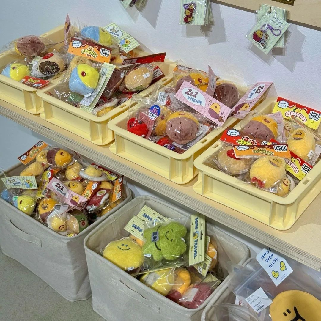 活动现场,乔古漫的玩偶周边和贴纸琳琅满目,每一件都可爱到“犯规”,让人恨不得全部打包带走!此次快闪新品首发,有透明长柄伞、举牌毛绒摆件、公仔、小托特包、活页手账本……众多好物令人挑花眼。