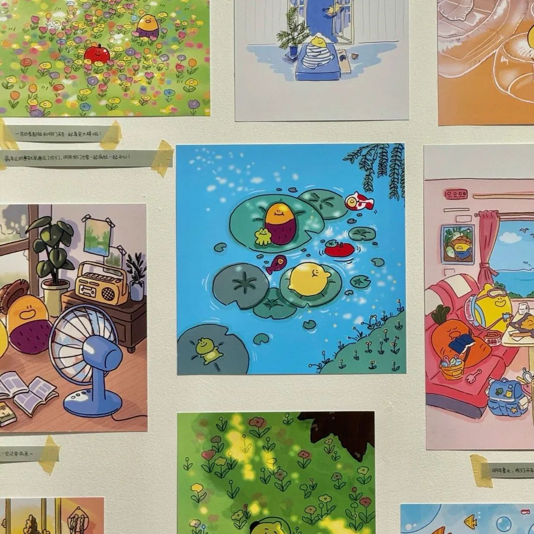 展览以联名主题“感到幸运,就很完美”为核心,生动诠释了真正的“完美一日”,并非源于宏大叙事。咖啡杯旁洒下的阳光、抬头望见的那片云朵、暑假在奶奶家品尝的西瓜、通勤路上的追剧小憩、与爱猫一起窝在沙发上的时光……这些我们习以为常的生活点滴,其实都是生活悄悄塞给我们的完美注脚。