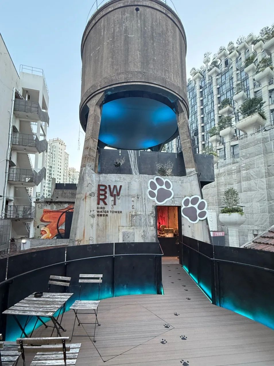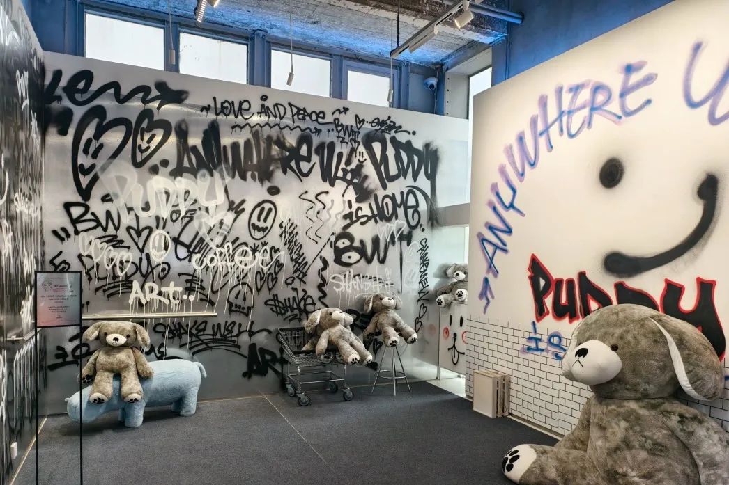 位于M50创意园的珀德BWT水塔咖啡迎来了色彩爆炸的Puddy小狗涂鸦,看似“脏兮兮”,却萌感十足!
