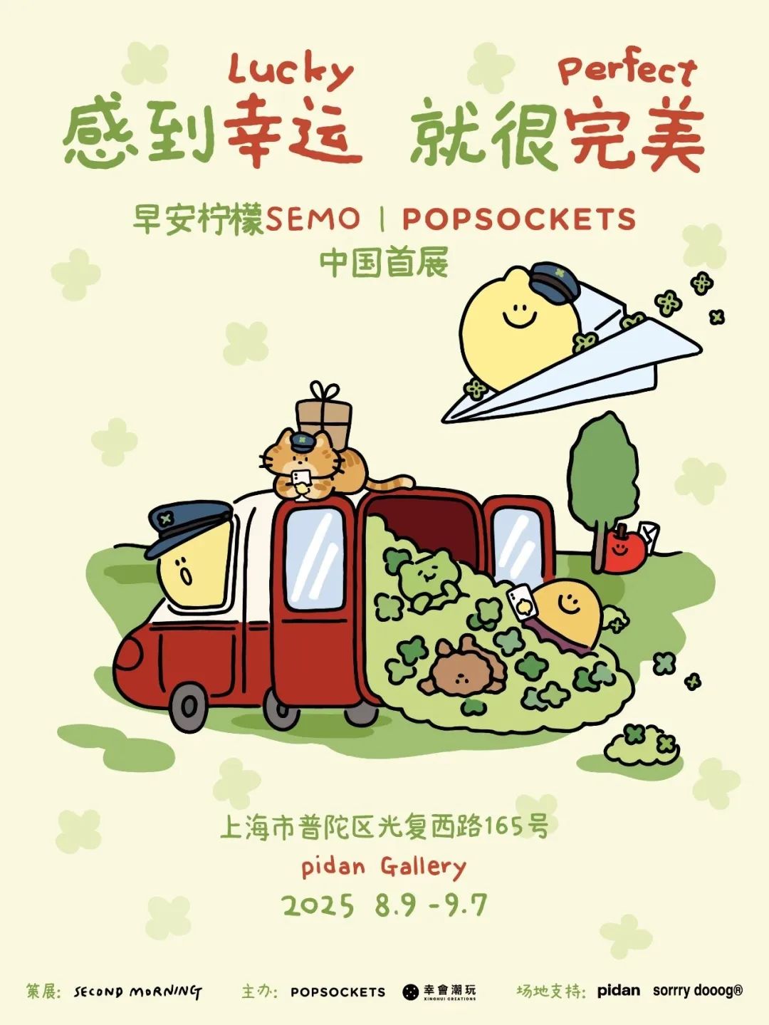 近期,位于苏州河边的pidan Gallery迎来了一场超治愈的展览——著名IP SECOND MORNING早安柠檬与全球生活方式品牌PopSockets泡泡骚联名合作系列展览“感到幸运,就很完美”。这是该IP在中国的首展,而且免费向公众开放!
