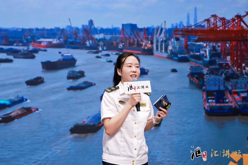“我是一名常在海上乘风破浪的姐姐。” 上海海事局 “海巡 01” 轮船长、我国首位远洋公务船女船长詹春珮作为第一位嘉宾,向观众们分享了她的海上经历。