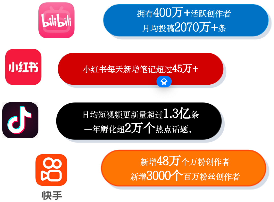 网络平台边界的不断拓宽,主流平台正与创作者携手打造全球最大规模、最具活力的创作体系。而不同平台间的差异,也在随着技术赋能与内容拓宽,不断缩小。如小红书平台正在转战二次元内容,而哔哩哔哩作为传统二次元和垂直类平台在尝试转型短视频作品,典型平台间的定义正在模糊。