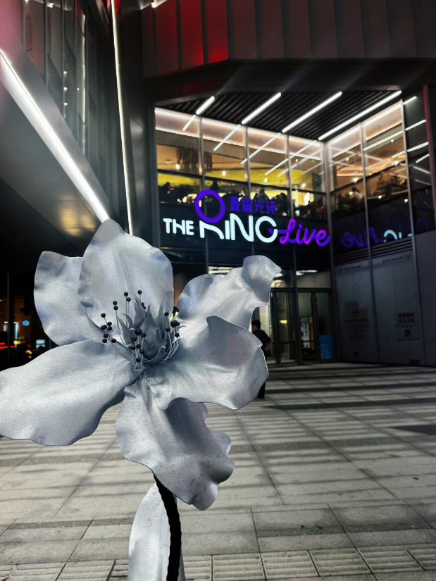 逛街区时别错过路边的绿化灌木丛!这里藏着一组组会“呼吸”的机械开合花装置。到了夜色里,它们会悄然“开合”,将科技感与自然的生命力交织成一首无声的光之诗。无论是蹲下来拍装置特写,还是站在旁边拍氛围感夜景,都能轻松出片,感受不经意间的小美好。