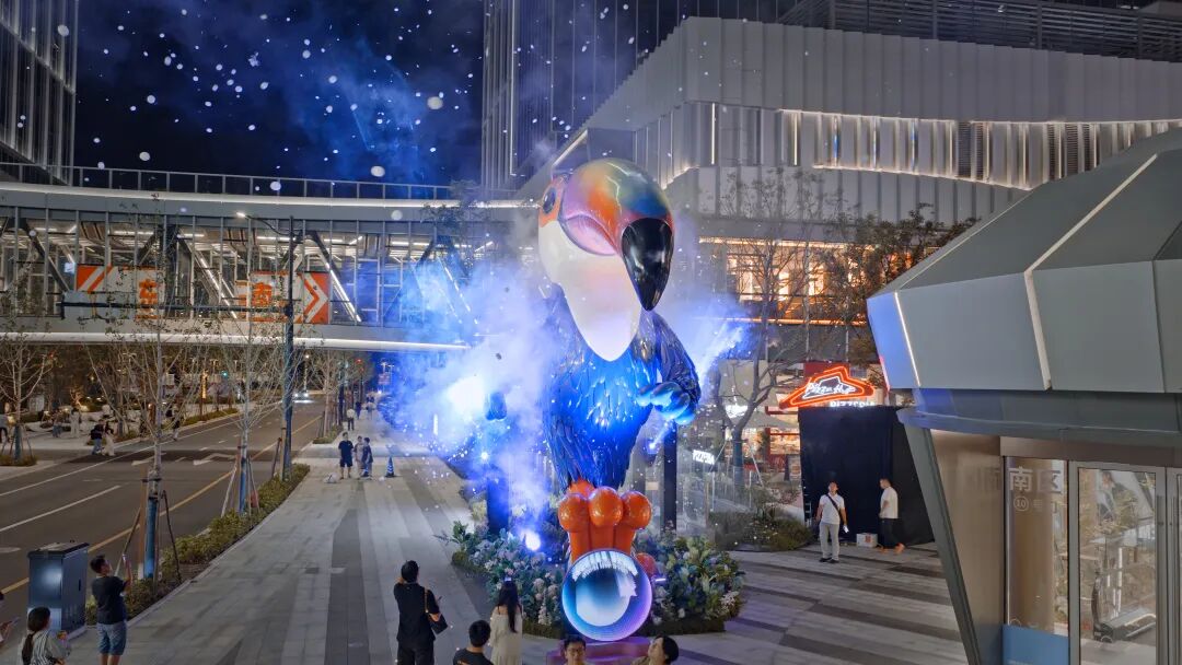 想放松身心?就来《梦幻岛》光影秀!这里是与艺术家Ken Kelleher的IP雕塑联动打造的场景,软萌的巨嘴鸟拓拓披上炫酷光影,直接变身街区“岛主”。站在光影里,看着流转的光芒,好像能把所有烦恼都装进泡泡里随风飘走,治愈感爆棚,适合停下来慢慢感受这份光影带来的温柔。