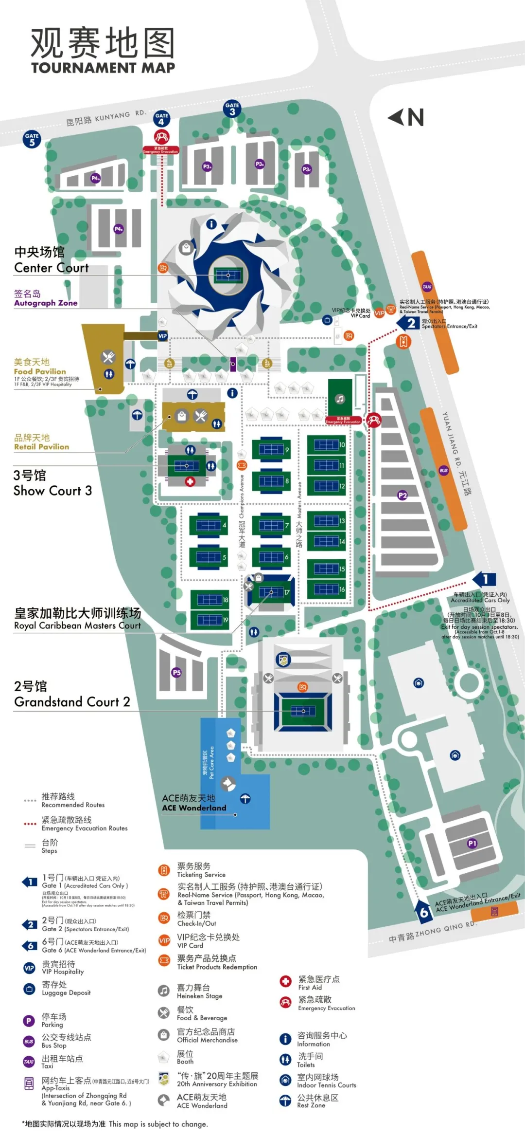 需前往6号场、7号场、皇家加勒比大师训练场(17号场)观看比赛或观看训练的观众,请在“大师之路”有序排队入场。