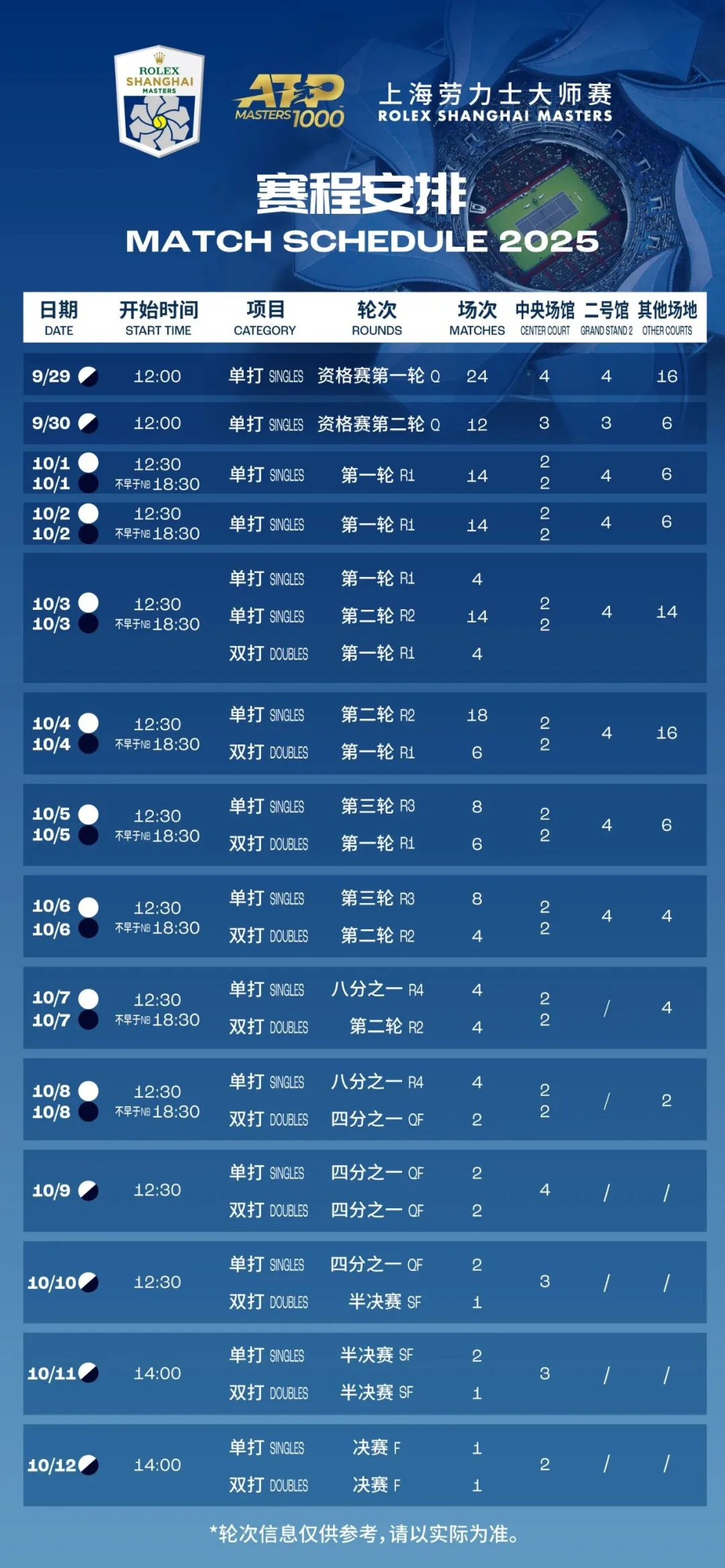 市体育局介绍,2025上海劳力士大师赛将于9月29日至10月12日举行,赛程覆盖国庆黄金周与中秋佳节,为球迷奉上为期两周的网坛盛宴。想要轻松开启观赛之旅?请收下这份“观赛攻略”。