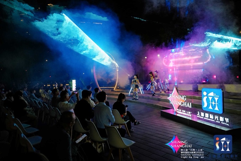 本次点亮仪式呈现了与百年建筑融合的沉浸式光影音乐秀《申城之光》,同时现场还特别展映了“闪亮·上海”(静安)2025国际光影艺术大赛的金、银、铜奖作品。“闪亮·上海”(静安)2025国际光影艺术大赛赛全球招募历时2个月,共收到来自全球6个大洲、32个国家与地区的145位艺术家/团队投递的154件作品,其中一半以上的艺术家/团队都曾获得东京、imapp(罗马尼亚)、柏林灯光节等国际一线光影节奖项。经评选。最终有20件作品脱颖而出入围终选,并将作为亮点内容,于9月29日至10月8日在苏河湾慎余里墙面进行展映。大赛获奖艺术家团队之一——来自德国柏林的国际艺术家们亲临现场,从多元文化视角诠释第三届“闪亮·上海”静安国际光影展(2025)以及大赛的年度主题“光语家园”,并盛赞大赛是“国际顶尖的光影艺术比赛之一”。