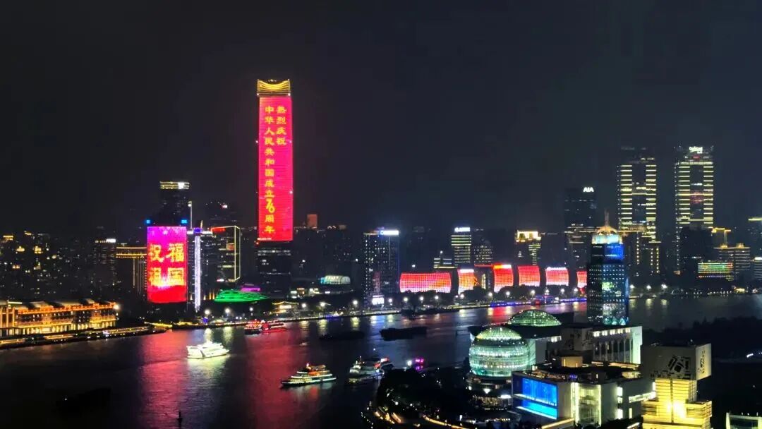 震旦国际大楼、花旗集团大厦、上海中心大厦、浦东美术馆、白玉兰广场、国际港务大厦、国际客运中心建筑群等黄浦江沿岸的主要媒体立面播放国庆节主题宣传画面。9月30日至10月8日:18:00至22:30,每逢整点和半点播放2次。