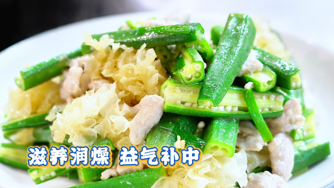 立秋后,气温由热转凉,燥邪渐长,此时宜多食滋阴润燥类果蔬,少吃辛辣刺激之品,银耳润肺生津,秋葵清热利湿,佐以肉片平补气血,这盘清炒,既化解了夏末的燥热,又为深秋的收敛埋下伏笔。