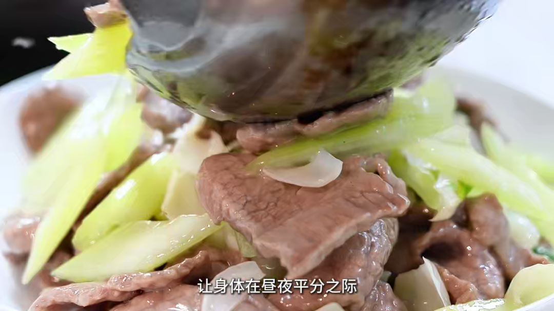 秋分时节已真正进入秋季,冷空气开始日渐活跃,因此饮食上宜多食一些清热、温润为主的食物,百合润肺安神;西芹平肝清热;加以牛里脊的温补气血,让身体在昼夜平分之际找到最舒适的平衡点。