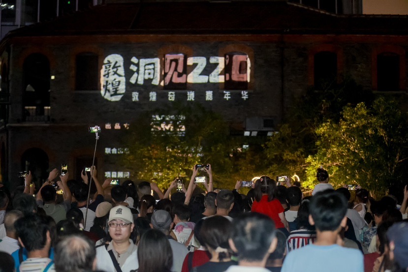 口福饱完享眼福。夜幕降临,上海文学馆巴金图书馆前,2025第二届上海国际光影节虹口重磅活动“洞见220·敦煌奇境嘉年华”吸引了大批市民游客专程打卡,超现实建筑光影秀“丝路光影”绝美还原第220窟壁画元素,光影联动演出“乐舞妙音”更通过绚烂舞蹈与光影交织,重现敦煌壁画的灵动之美;而街区的另一侧,“华灯共庆”海派中秋灯会多组超大型灯光艺术装置亦引人围观,人们在“甜爱廊”观景露台欣赏“瑶台幻梦”,看玉兔欢腾跳跃、月亮从屋顶粉色爱心海冉冉升起,在弄堂仰望以整幢百年建筑为画布的“琼楼今潮”,看巨型六角宫灯一字排开。整个街区随处可见节日装饰,层层叠叠的宫灯、流光溢彩的帘幕、美轮美奂的旦角盔头,拉满古典中秋意境。