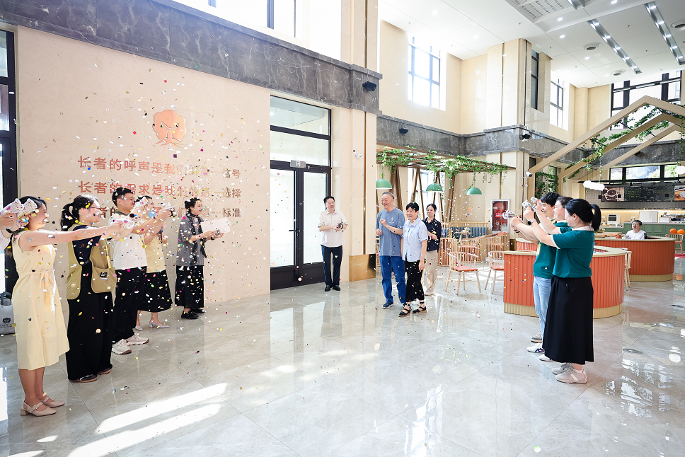 近日,闵行区规模最大的养老院——曙东颐养院启动试运营。80岁的吴子佛夫妇作为首批入住者,亲手揭下新房门的启封条,接过院方准备的鲜花与蛋糕,他感慨道:“这里像极了年轻时第一次搬进新家的感觉!”当日,养老院共迎来6位老人入住。