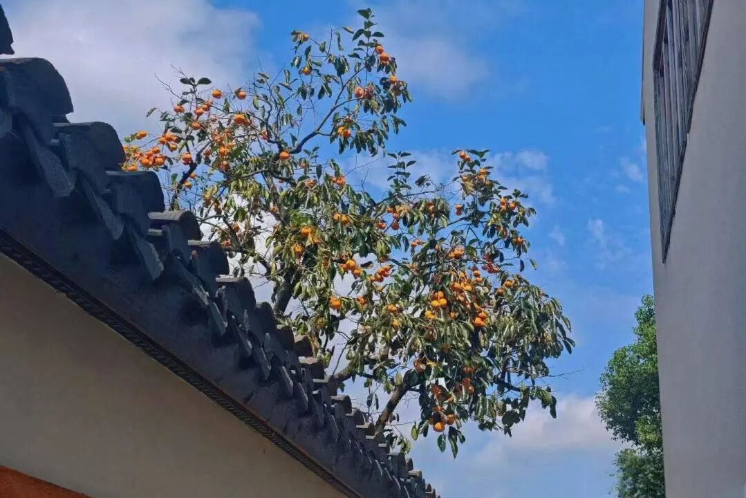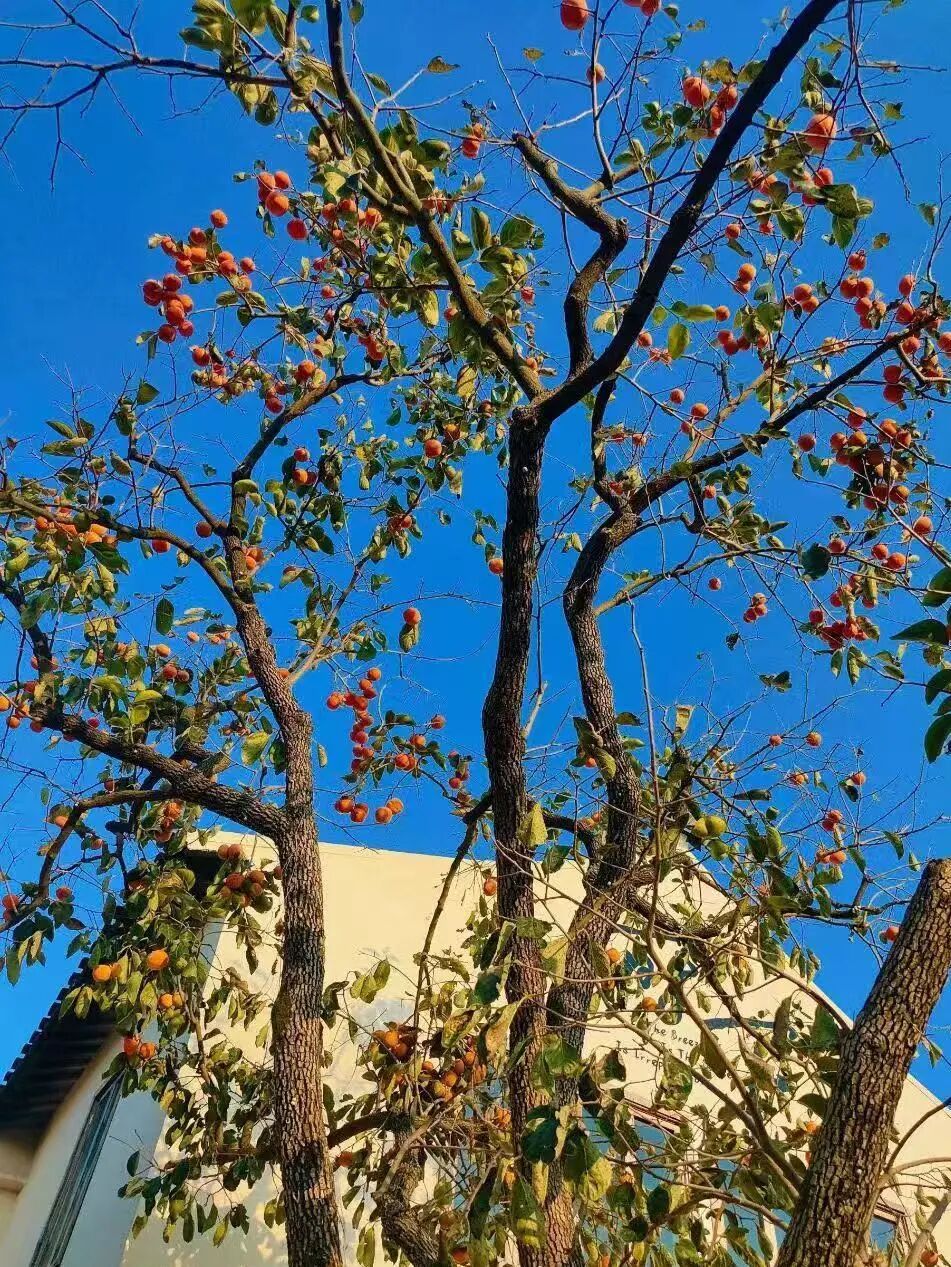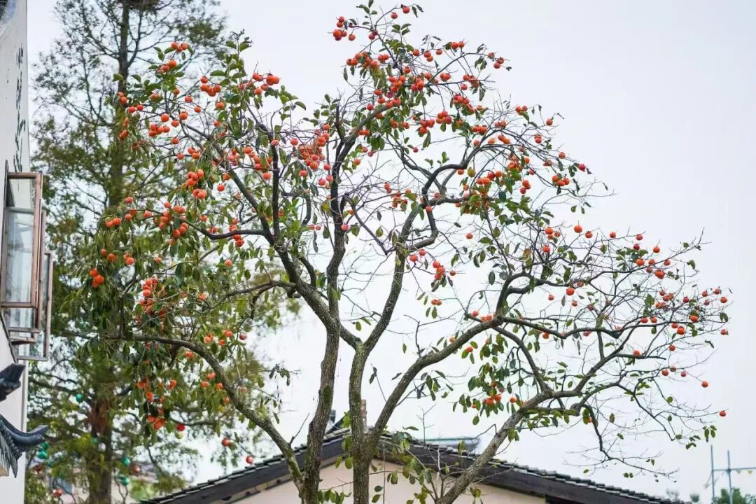 秋色不必远行,奉贤这里的柿子树红透了→