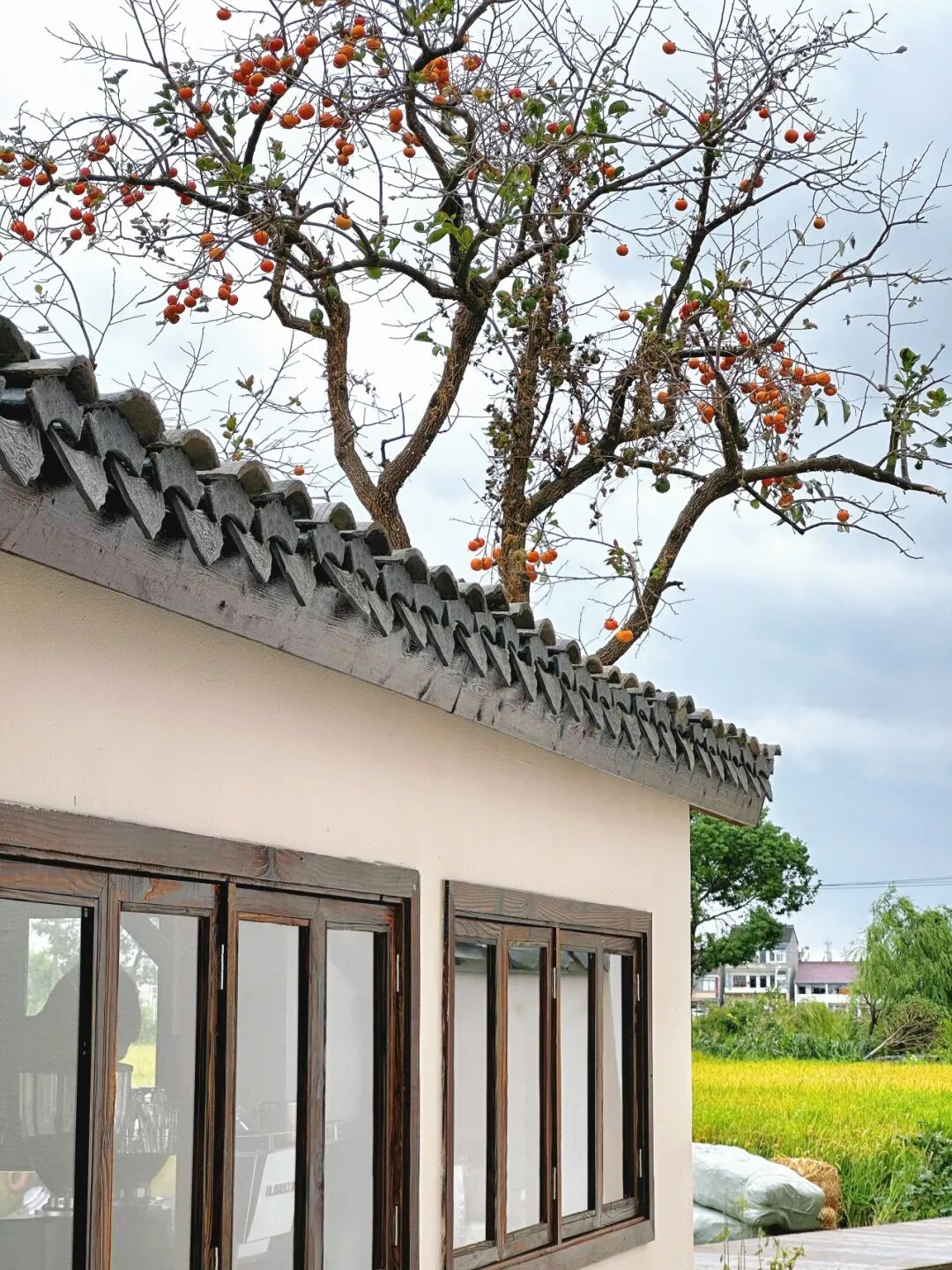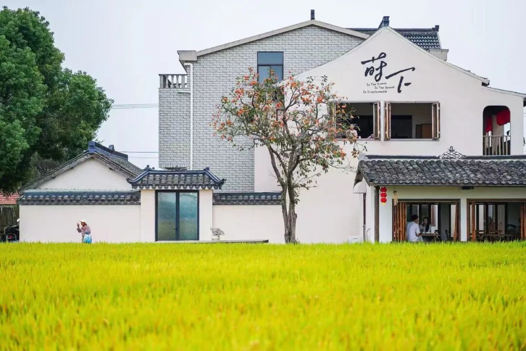 近日,随着“老舍故居的柿子树成功入秋”在网络上走红,秋意也悄然漫进上海。上周起,申城气温正式转凉,而在奉贤区青村镇莳下田园餐厅,那棵“网红柿子树”也已悄然披上红装。白色小屋静立,金色稻田铺展,枝头点点红柿摇曳,共同构成一幅生动的江南秋景图。