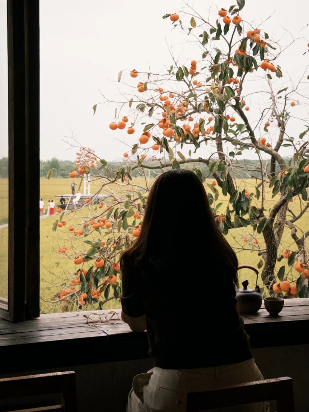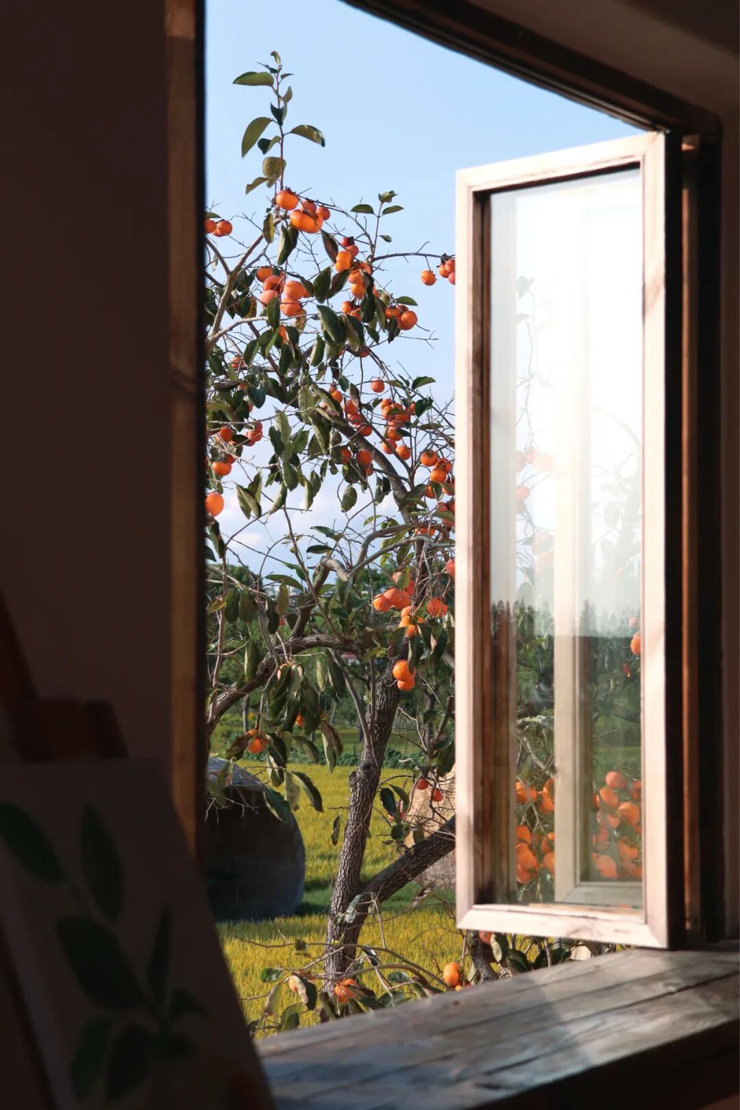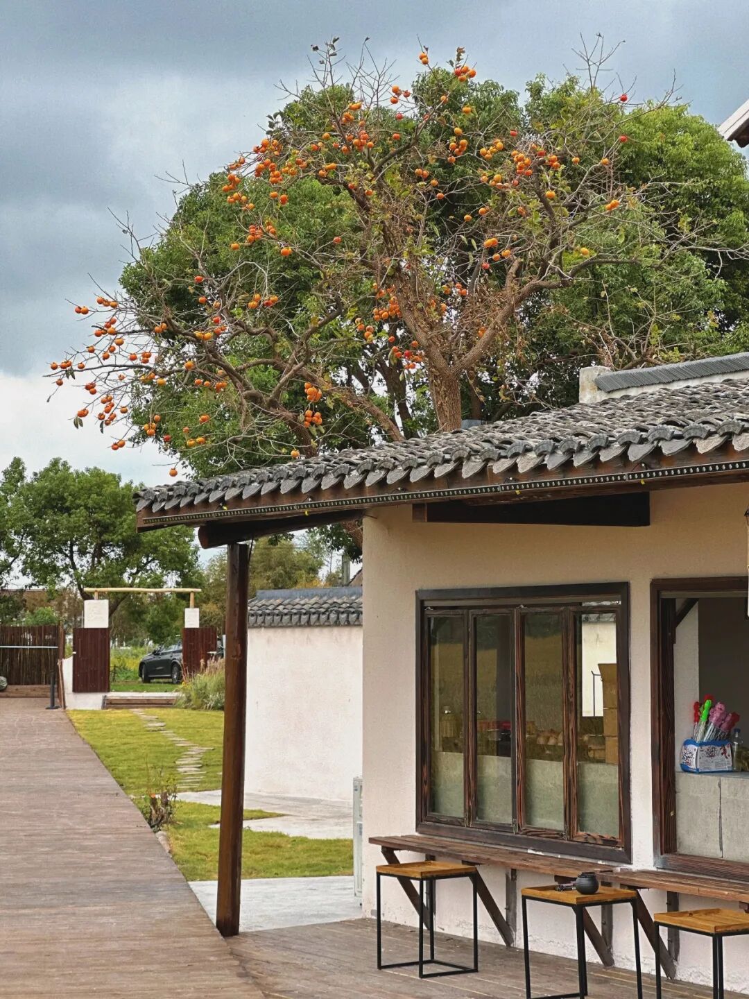 与北京老舍故居院中那棵承载人文记忆的柿子树不同,“莳下”的柿子树,自带一份南方田园的轻盈诗意。餐厅负责人逗逗说:“我们的柿子树是田园的一部分,它背后没有厚重的历史,但它与稻田、水系和天空共同构成的画面,是活的、充满生机的。”