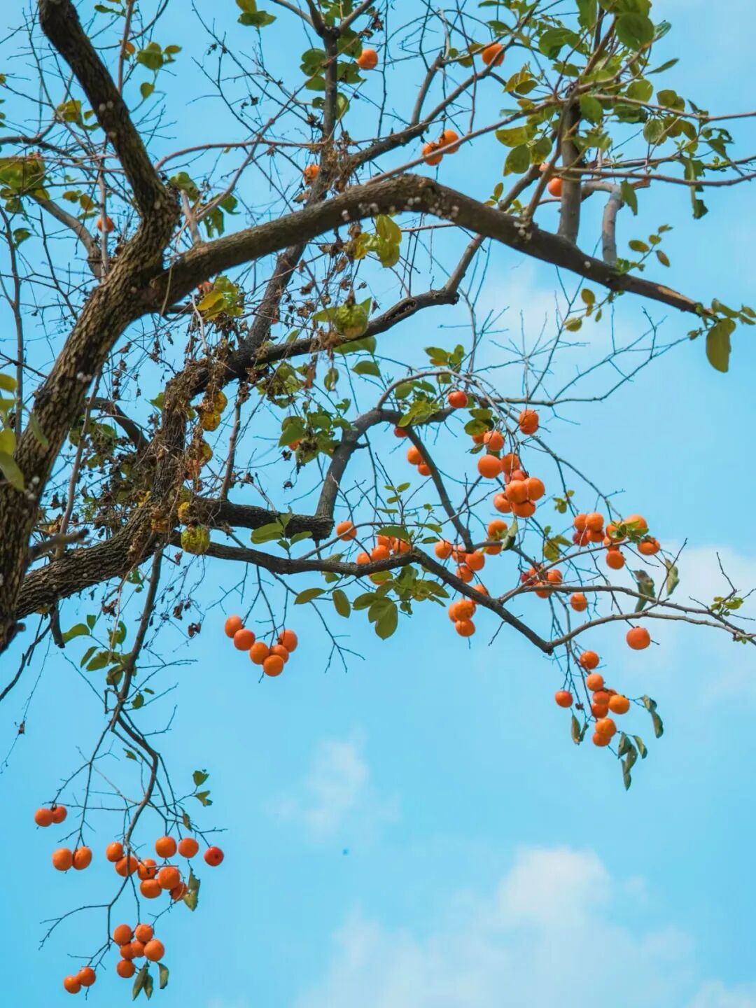 最佳时间:上午9~11点,阳光穿过柿叶形成斑驳光影;