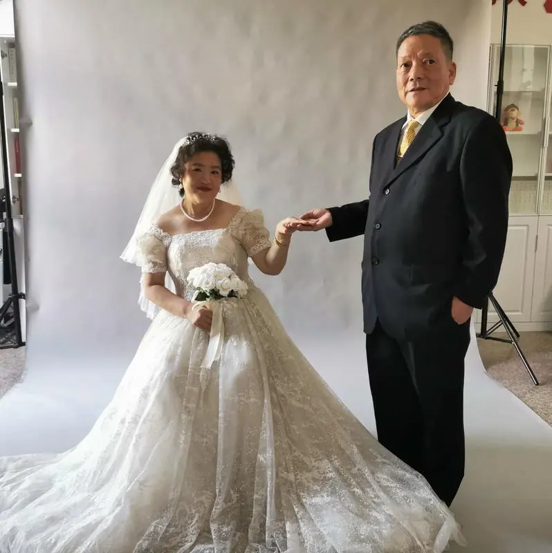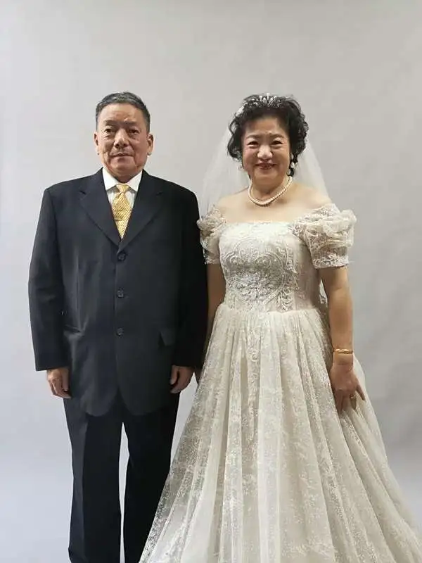 妻子王应华说:“我们结婚在70年代,那个时候没有婚纱,现在算是实现了年轻时候的愿望吧。”