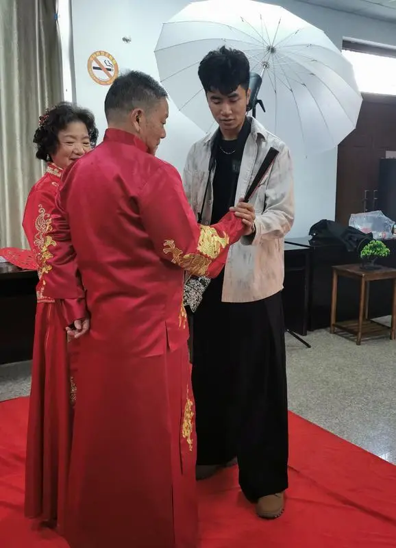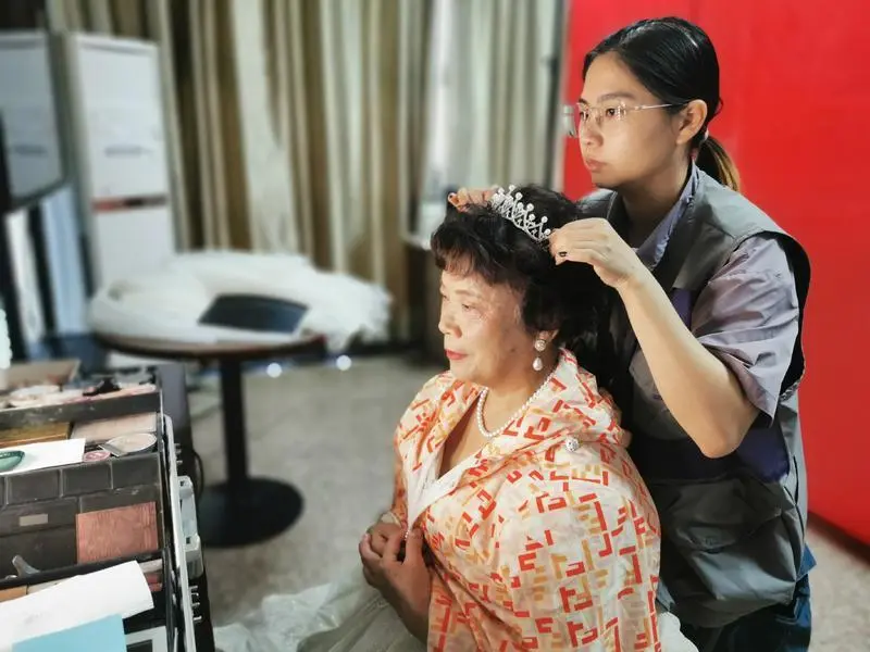 上午9点,社区志愿者们陆续为前来拍照的老人化妆,帮着他们穿好西装和婚纱。一对对老人努力在相机前留下晚年最美好的画面。记者在现场了解到,73岁的倪志鋆和72岁的王应华夫妇相识已经54年,今年正好是他们结婚48周年,看着眼前焕然一新的伴侣,他们的眼眶渐渐湿润,布满皱纹的手却不自觉地相握,好似回到了年轻时最美好的时光。