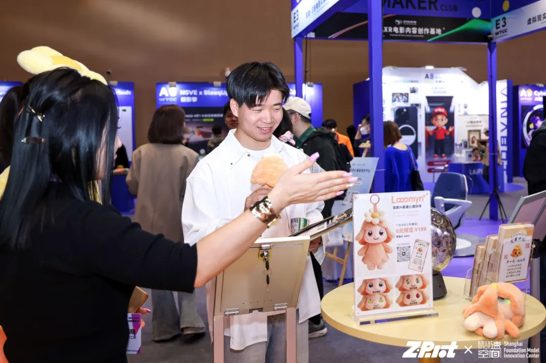 展会现场,不少家长对陪伴类产品表现出浓厚的兴趣。在珞博智能展台前,家中有两个孩子的马女士被其产品Fuzozo芙崽所吸引。芙崽是一款以AI大模型为底座的情感陪伴潮玩,外形是一个小巧的毛绒挂件,方便随身携带。它最大的亮点,不只是可爱,还是一个“长期养成”的AI伙伴。芙崽通过听、说、看、动,以及宠物养成机制,可以和用户建立稳定的情感连接。“我儿子喜欢和智能产品对话,这种具象化的玩偶比平板体验感更好,作为陪伴产品很合适。”马女士说道。