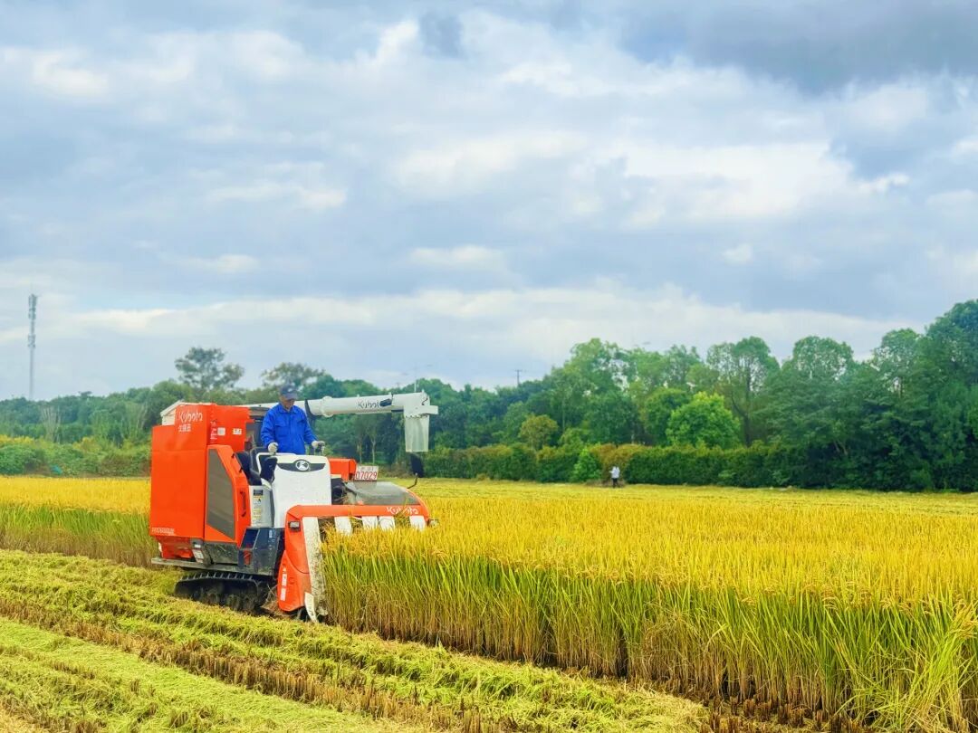 听——收割机的轰鸣惊起了雀鸟,也唤醒了沉睡的土地。它们如灵巧的金甲虫,在田垄间游走、转身,将收割、脱粒、吐粮谱成秋日的协奏曲。田埂上驻足的人们,眼里映着同样的金光,已经开始轻声询问:“这新米,何时能尝?”