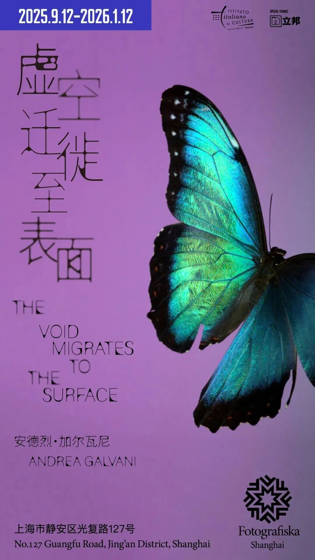 意大利国际艺术家安德烈·加尔瓦尼(Andrea Galvani)的亚洲首次个展《虚空迁徙至表面》(The Void Migrates to the Surface),展览由艺术家特别创作的多频影像及声音装置构成,以突破性的沉浸式体验,带领观众步入一个时间维度被重新定义的平行宇宙。在此次最新影像创作中,艺术家运用每秒可捕捉百万帧的超慢动作摄影技术,将二十种濒危蝴蝶仅数周的短暂生命周期,精确延展至人类尺度的73年。