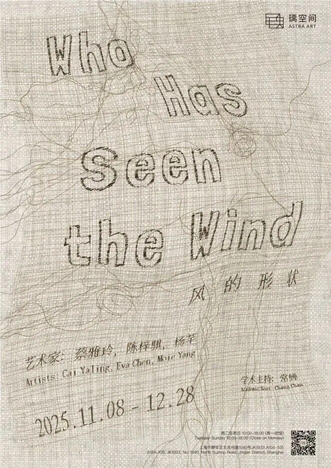 瑀空间展览《Who Has Seen the Wind》(风的形状)取意自英国诗人Christina Rossetti的诗,以“不可见之物”的显现为出发点。展览呈现蔡雅玲、陈梓骐与杨芊三位女性艺术家的创作实践,她们以各自的媒介与感知路径,描绘那些被感知却无法被捕捉的存在。风在这里成为一种象征性的线索——它牵引出情感、记忆与身体经验的流动,提示我们关注那些隐匿于日常肌理之下的微动与余响。