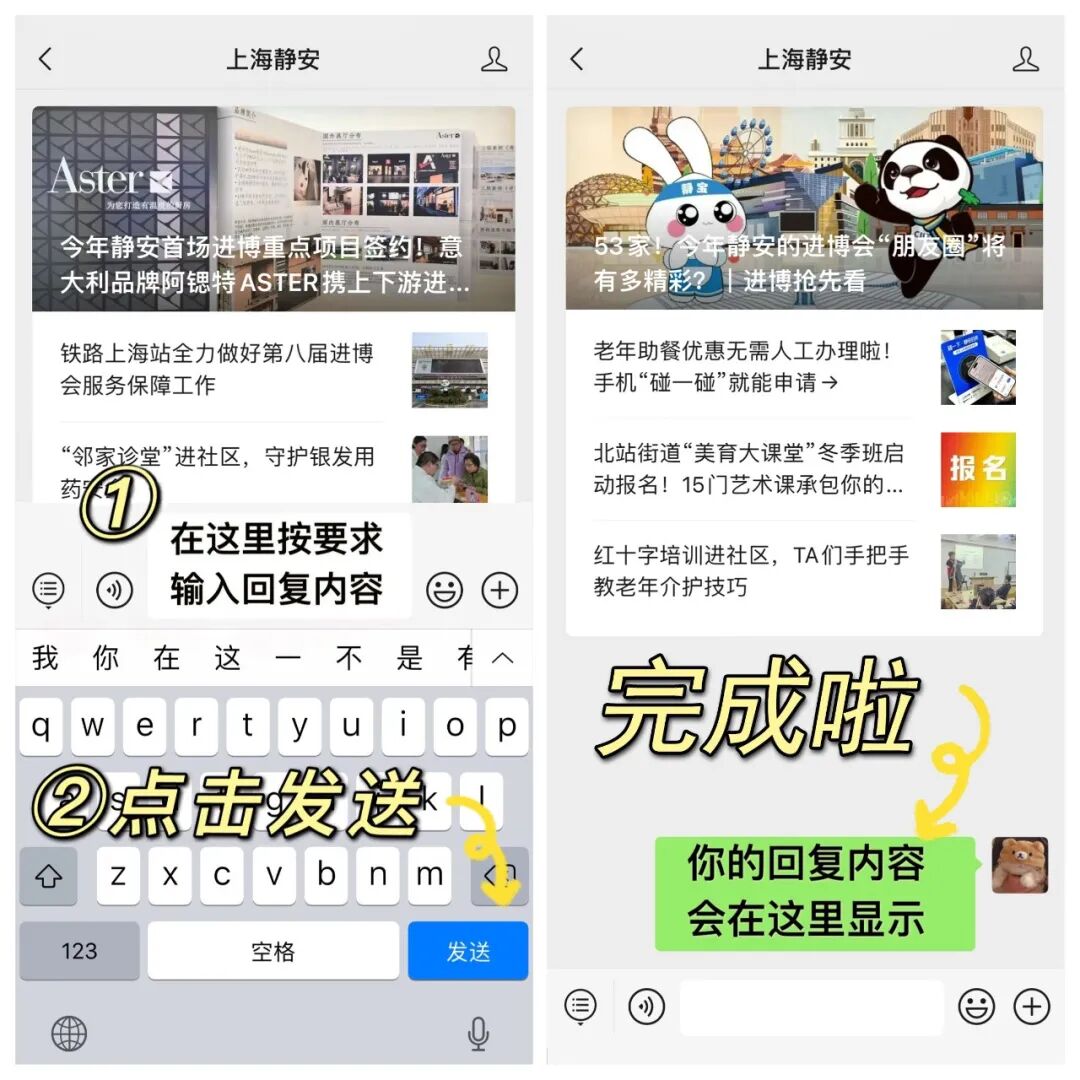 留言后,同步在“上海静安”微信公众号对话框回复“本人姓名+手机号码+收件地址”(信息仅用于为中奖网友寄送快递)。