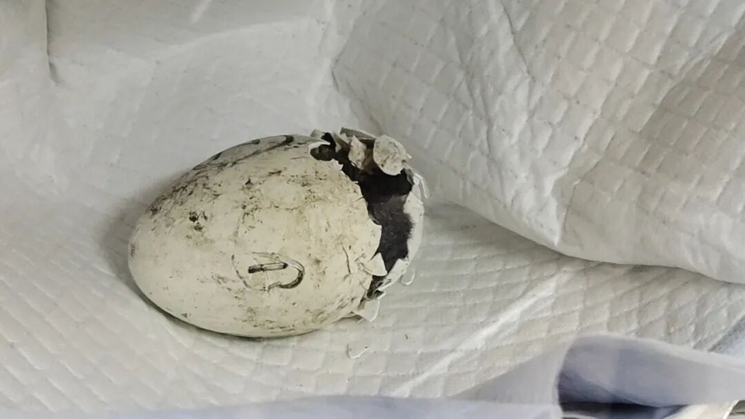 在破壳的关键时刻,小家伙遇到了“胎位不正”的困境。非常规的体位使它难以依靠自身力量踢破蛋壳,呼吸到第一口空气。千钧一发之际,守候在旁的保障团队迅速而轻柔地施以援手,小心翼翼地协助它扩大呼吸孔,最终帮助它顺利完成诞生的重要一步。