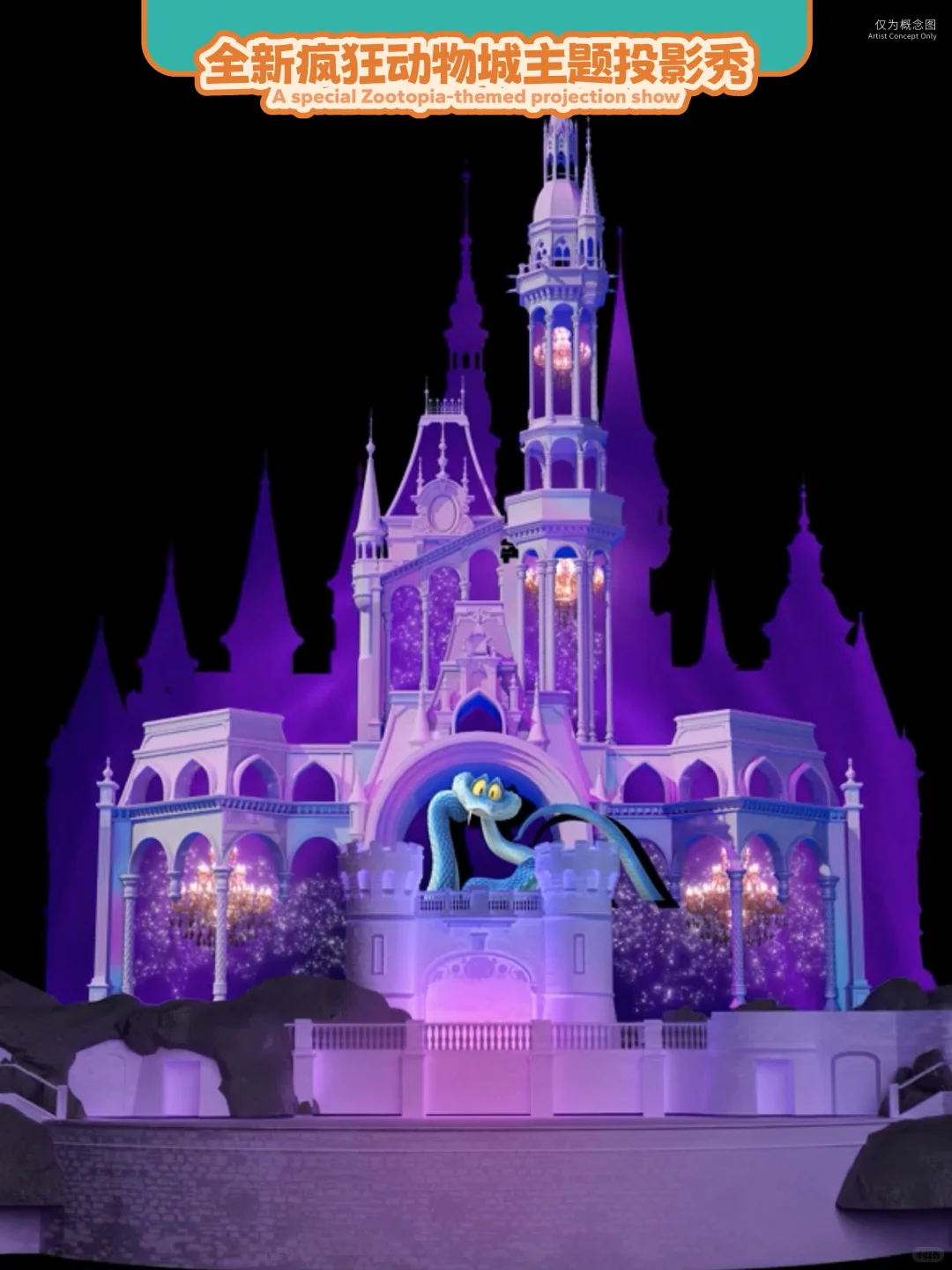 在此期间,每当夜幕降临,奇幻童话城堡还将在标志性演出“奇梦之光幻影秀”上演前,呈现一场特别的疯狂动物城主题投影秀。
