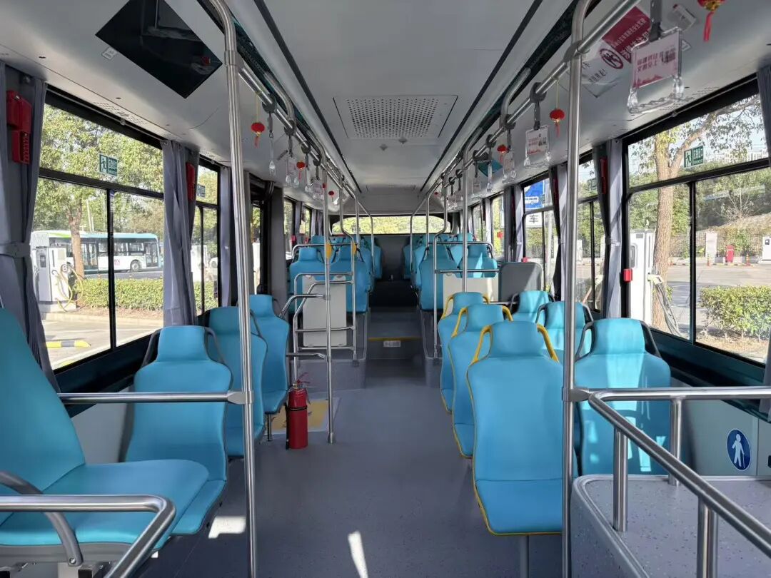 新车外观融合磁悬浮列车的流线型设计,配合低风阻斜面车头,节能又美观。车内采用无障碍低地板布局,配备轮椅专区及呼叫按钮,软质座椅依据人体工学打造,全面提升乘坐舒适度。车辆具有多项智能辅助驾驶功能,全方位守护行车安全,让市民出行更加平稳安心。